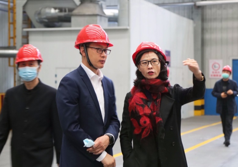▲张海燕董事长陪同张江秘书长一行参观智能化铸造车间